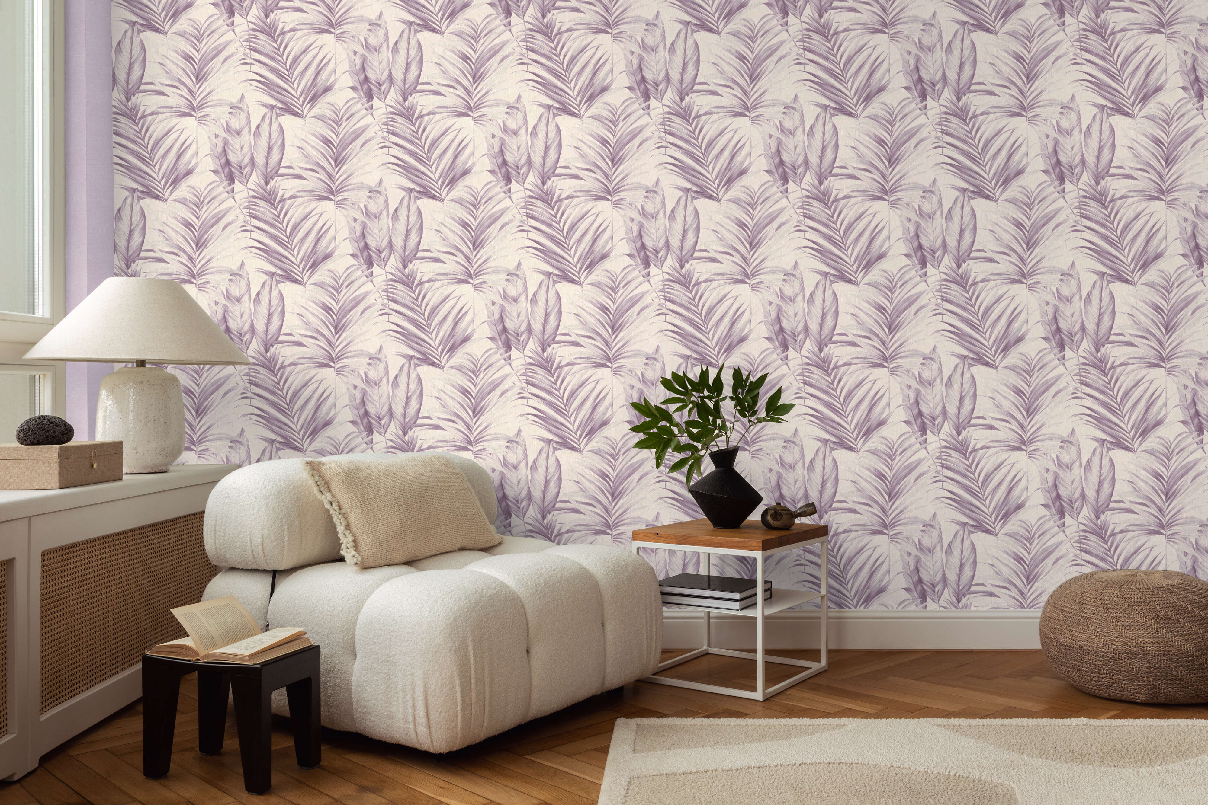 Zarte Palmblätter leiten die Kollektion ein und verleihen jedem Raum eine ungezwungene, luftige Ruhe. Goldene Akzente sorgen für einen raffinierten Schimmer, der einen Hauch von Luxus vermittelt.