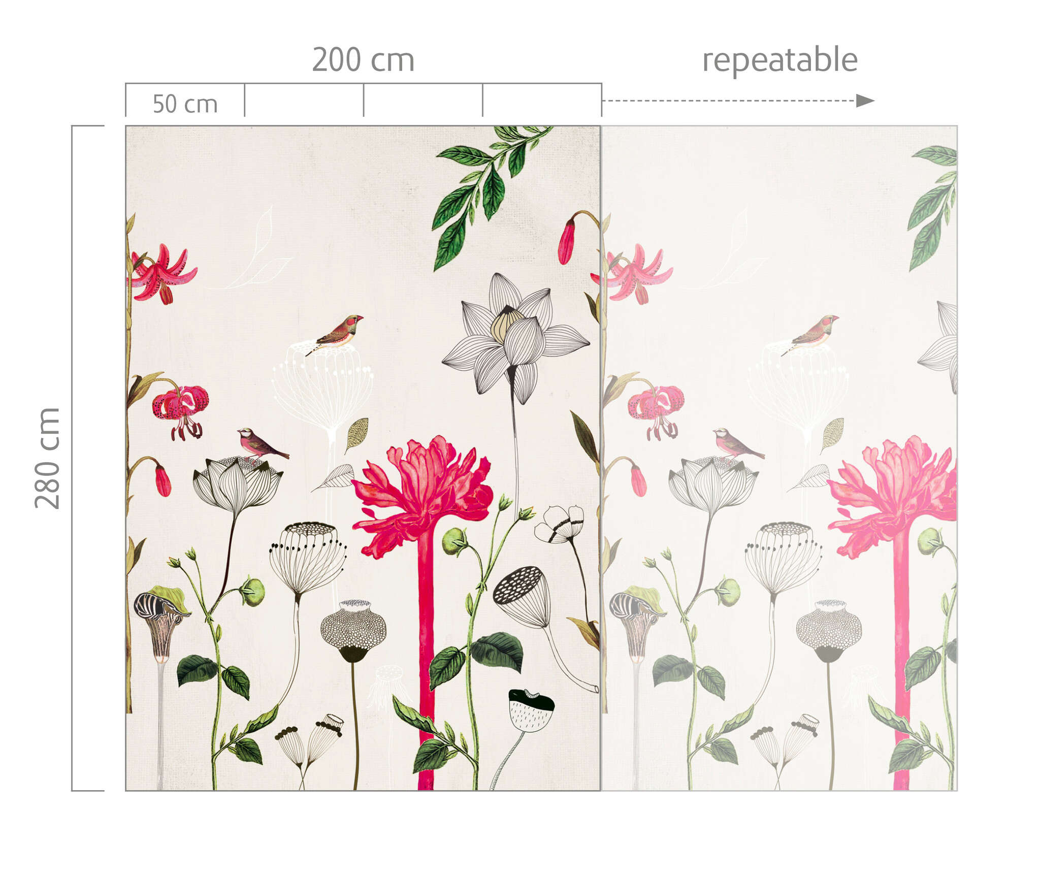 Dieses Motiv der Onszelf-Kollektion ist für alle die richtige Wahl, die Wert auf fein durchkomponierte Details und hochwertige Gestaltung legen. Zudem lässt sich mit dieser Vliestapete die Natur ins Haus holen – inklusive Vögeln wie Kernbeißern und Rotkehlchen. Das Besondere dabei: Die Amsterdamer Designer kombinieren hier klassische, botanische Pflanzen-Illustrationen mit grafischen Blumen-Darstellungen im Stil des Mit Century. Besonders die roten Blüten ziehen hier alle Blicke auf sich.