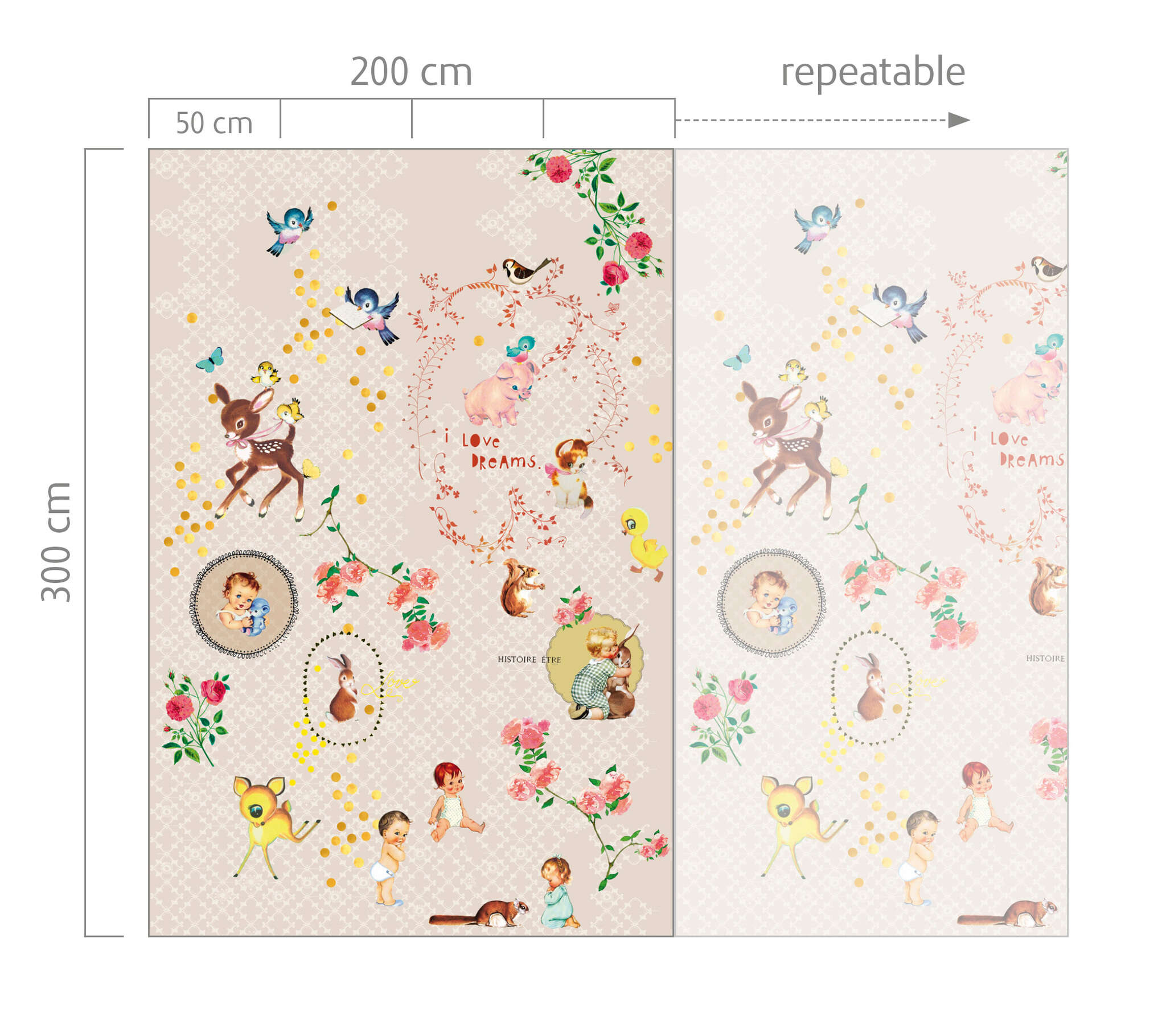 „Ein Häuschen aus Rosen, aus Veilchen die Tür, ein Herz voller Liebe, das wünsche ich dir!“ Auf dem taupefarbenen Hintergrund mit einem feinen grafischen Netzgeflecht präsentieren sich bunte Glanzbilder mit denen in vergangenen Zeiten die Sprüche in Poesiealben ausgeschmückt wurden. Verschmuste Kleinkinder, verspielte Tiere oder malerische Blumen… dieser Digitaldruck weckt Erinnerungen und zaubert so ein Lächeln in jedes Gesicht.
