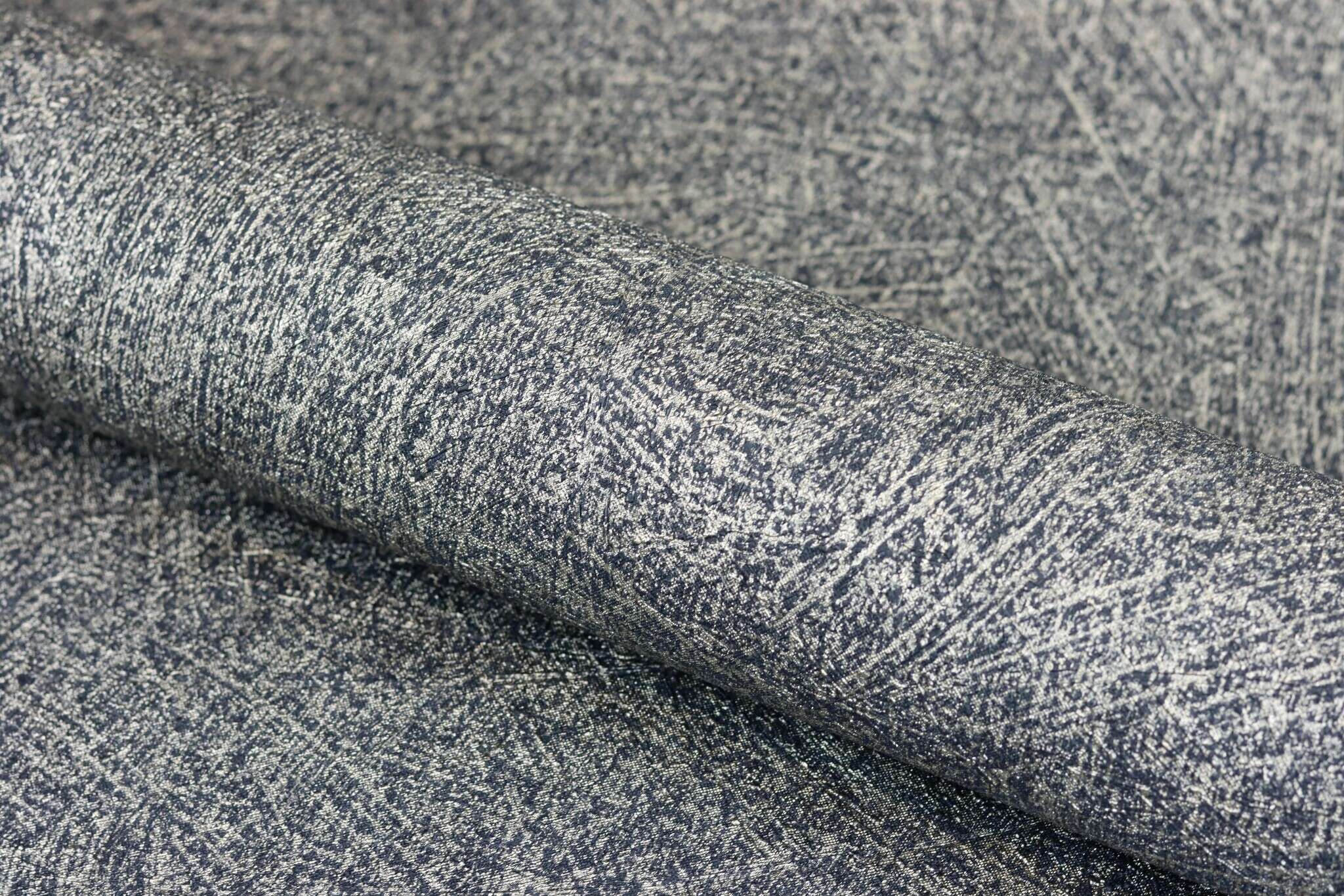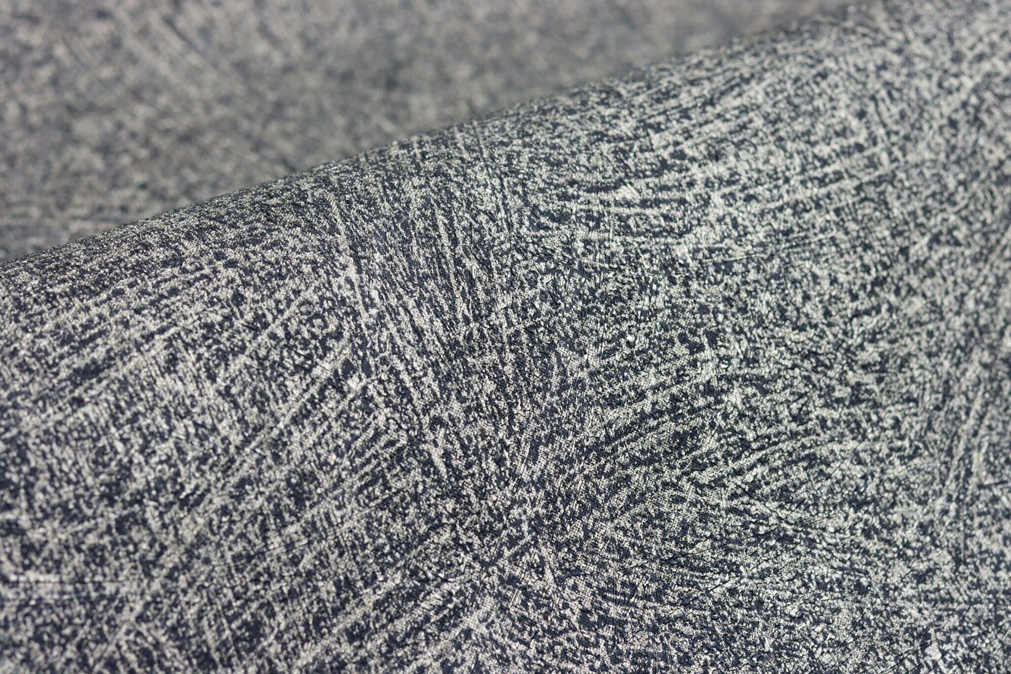 Diese Unitapete kann auch ohne ein starkes Muster an der Seite alle Blicke auf sich ziehen. Die aufwendig gearbeitete Putzstruktur in Nachtblau und glänzendem Silber macht jede Wand zum Highlight. Zack – schon hat man mühelos glamourösen Großstadtflair in seinem Zuhause.