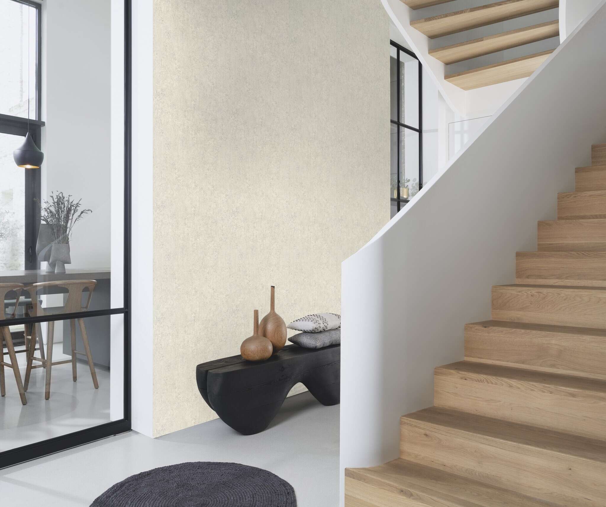 Concrete übersetzt die urbane Klarheit von Beton in ein zeitloses Wanddesign. Mit seiner zurückhaltenden Struktur schafft es eine puristische Basis, die Räume modern und authentisch wirken lässt. Ein vielseitiges Uni, das sowohl solo überzeugt als auch perfekte Bühne für ausdrucksstarke Kombinationen ist.
