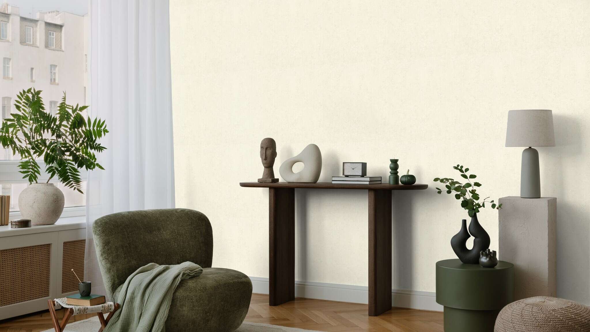 Concrete übersetzt die urbane Klarheit von Beton in ein zeitloses Wanddesign. Mit seiner zurückhaltenden Struktur schafft es eine puristische Basis, die Räume modern und authentisch wirken lässt. Ein vielseitiges Uni, das sowohl solo überzeugt als auch perfekte Bühne für ausdrucksstarke Kombinationen ist.