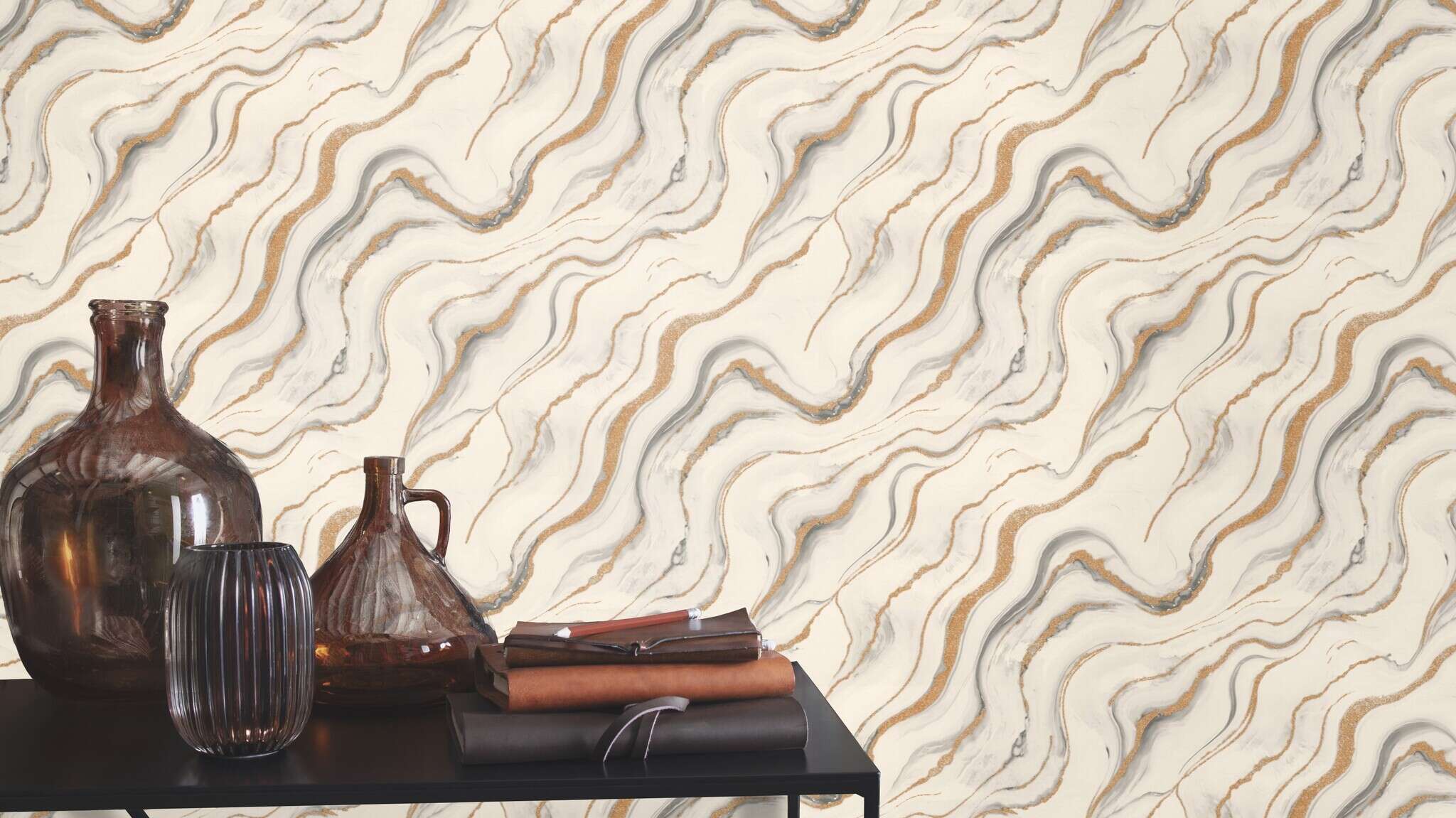 Marmorea lebt von dynamischen Strukturen und edlen Goldakzenten, die wie feine Adern durch die Oberfläche fließen. Sie verleihen dem Design Glanz, Tiefe und eine luxuriöse Ausstrahlung. Je nach Farbvariante entfaltet sich Stimmung – von elegant und dezent bis hin zu ausdrucksstark und modern.