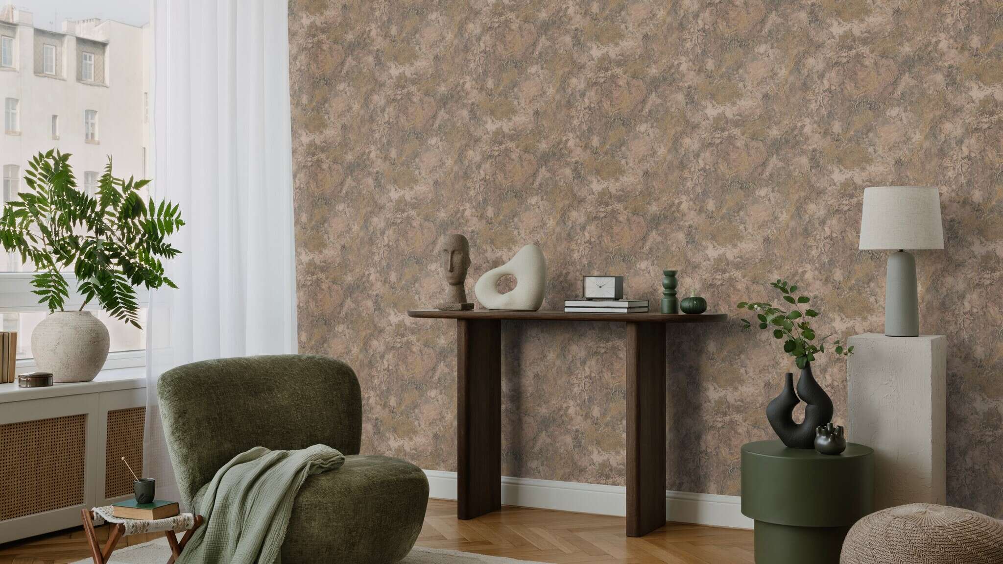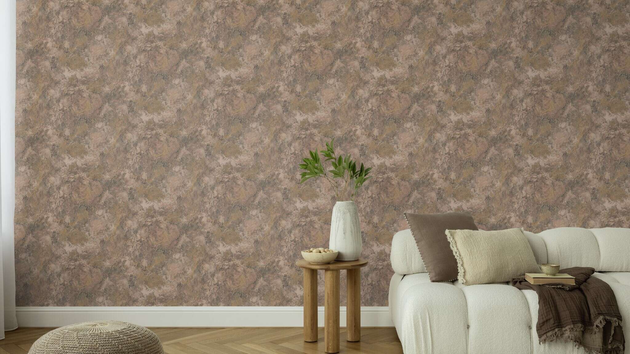 Echo spiegelt die authentische Schönheit pastöser Farbe auf rauer Leinwand wider. Mit seinen lebendigen Strukturen und feinen Schattierungen in warmen Natur- und Goldtönen entsteht eine Oberfläche voller Tiefe und Charakter. Ein ausdrucksstarkes Muster, das Natürlichkeit und Eleganz vereint.