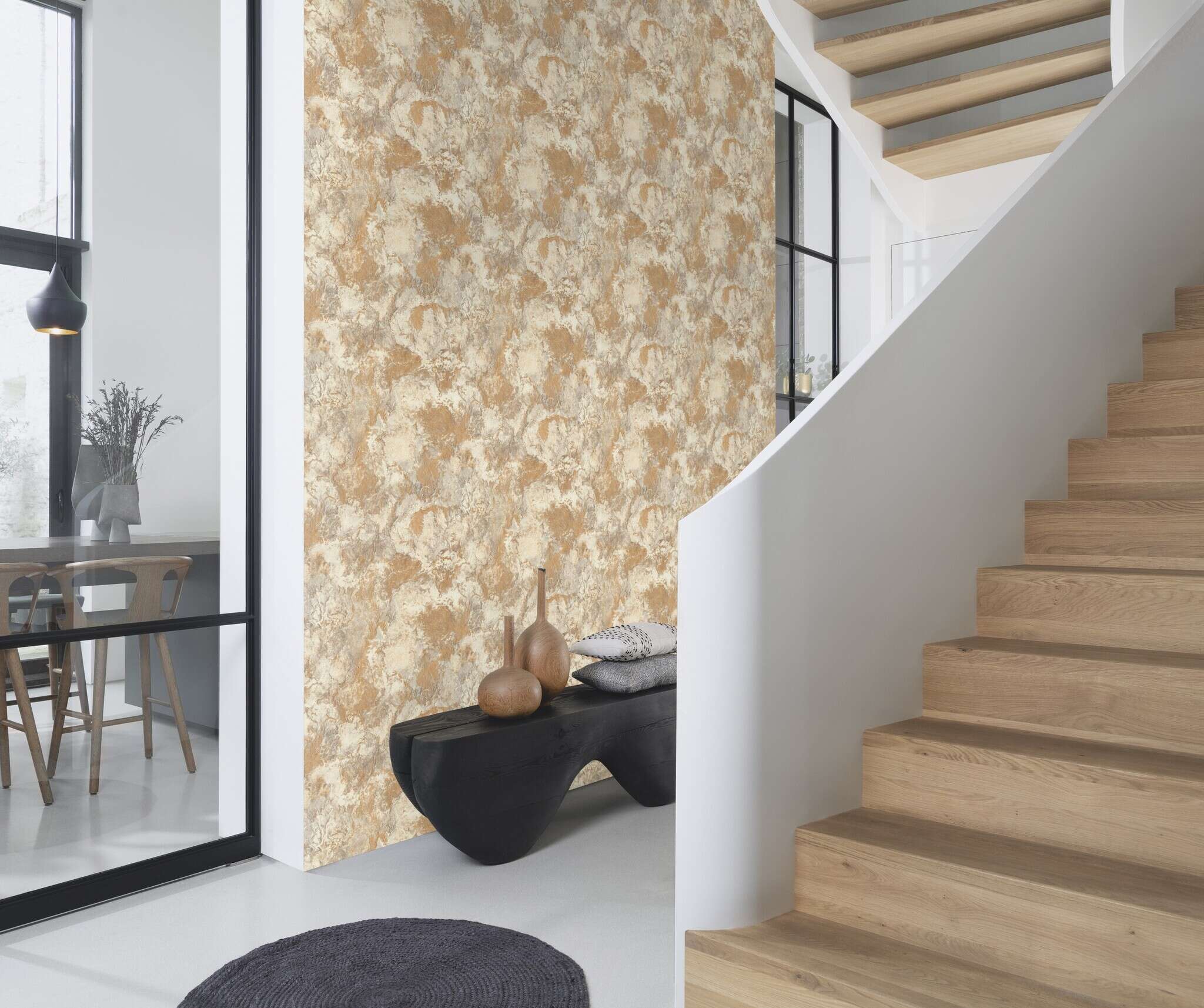 Echo spiegelt die authentische Schönheit pastöser Farbe auf rauer Leinwand wider. Mit seinen lebendigen Strukturen und feinen Schattierungen in warmen Natur- und Goldtönen entsteht eine Oberfläche voller Tiefe und Charakter. Ein ausdrucksstarkes Muster, das Natürlichkeit und Eleganz vereint.