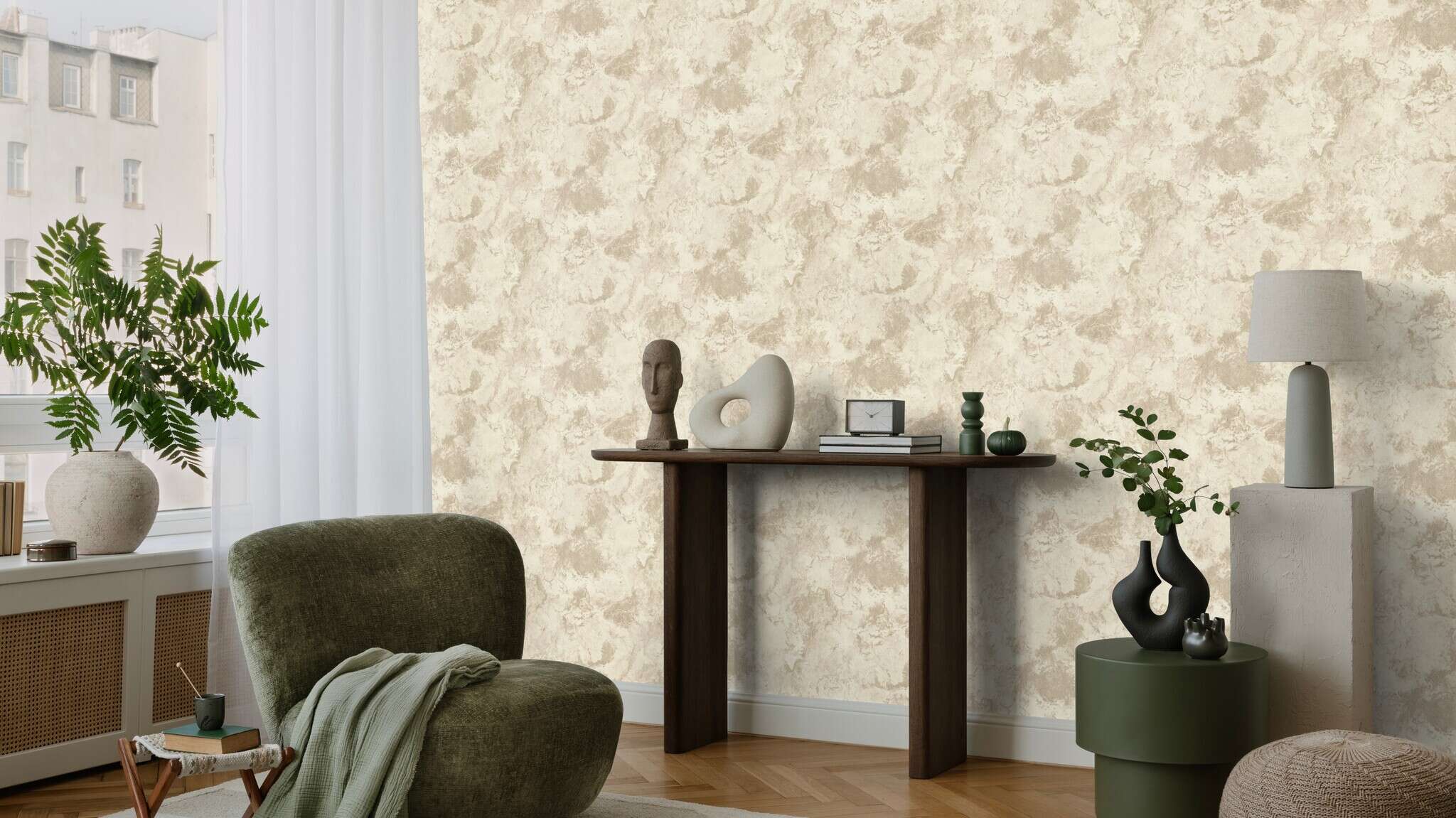 Echo spiegelt die authentische Schönheit pastöser Farbe auf rauer Leinwand wider. Mit seinen lebendigen Strukturen und feinen Schattierungen in warmen Natur- und Goldtönen entsteht eine Oberfläche voller Tiefe und Charakter. Ein ausdrucksstarkes Muster, das Natürlichkeit und Eleganz vereint.