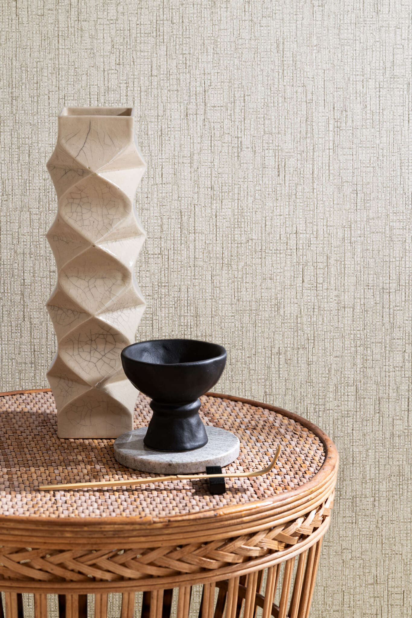 Shibori features a fine vertical pattern, reminiscent of woven fabric. The lines flow gently, creating a calm and even rhythm. Small irregularities give the design a handcrafted and natural feel. A quiet structure that brings harmony and depth to any space.