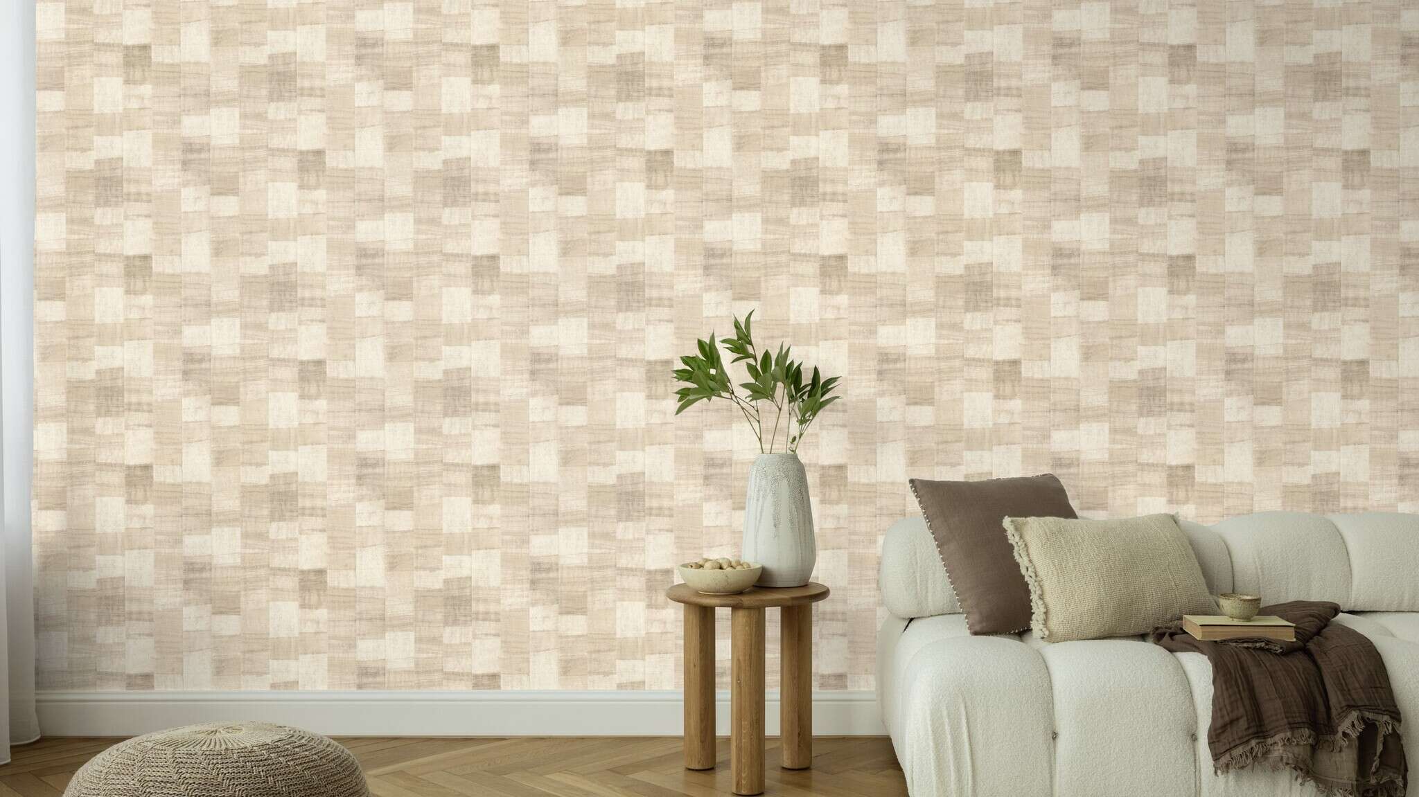 Holz wirkt wohnlich, gemütlich und verbreitet eine warme Atmosphäre – jetzt kommt noch eine kreative Komponente hinzu. Denn diese Tapete hat sich aus ihrer Komfortzone begeben, um uns eine ganz neue Seite der Wandgestaltung zu präsentieren. Das Ergebnis ist ein ästhetisches Parkettdesign mit Streifenoptik in Hellbeige und -braun. Dunkle Maserungen machen die Tapete zu einem ästhetischen Hingucker mit rustikalem Charme. Wohlfühlen vorprogrammiert.