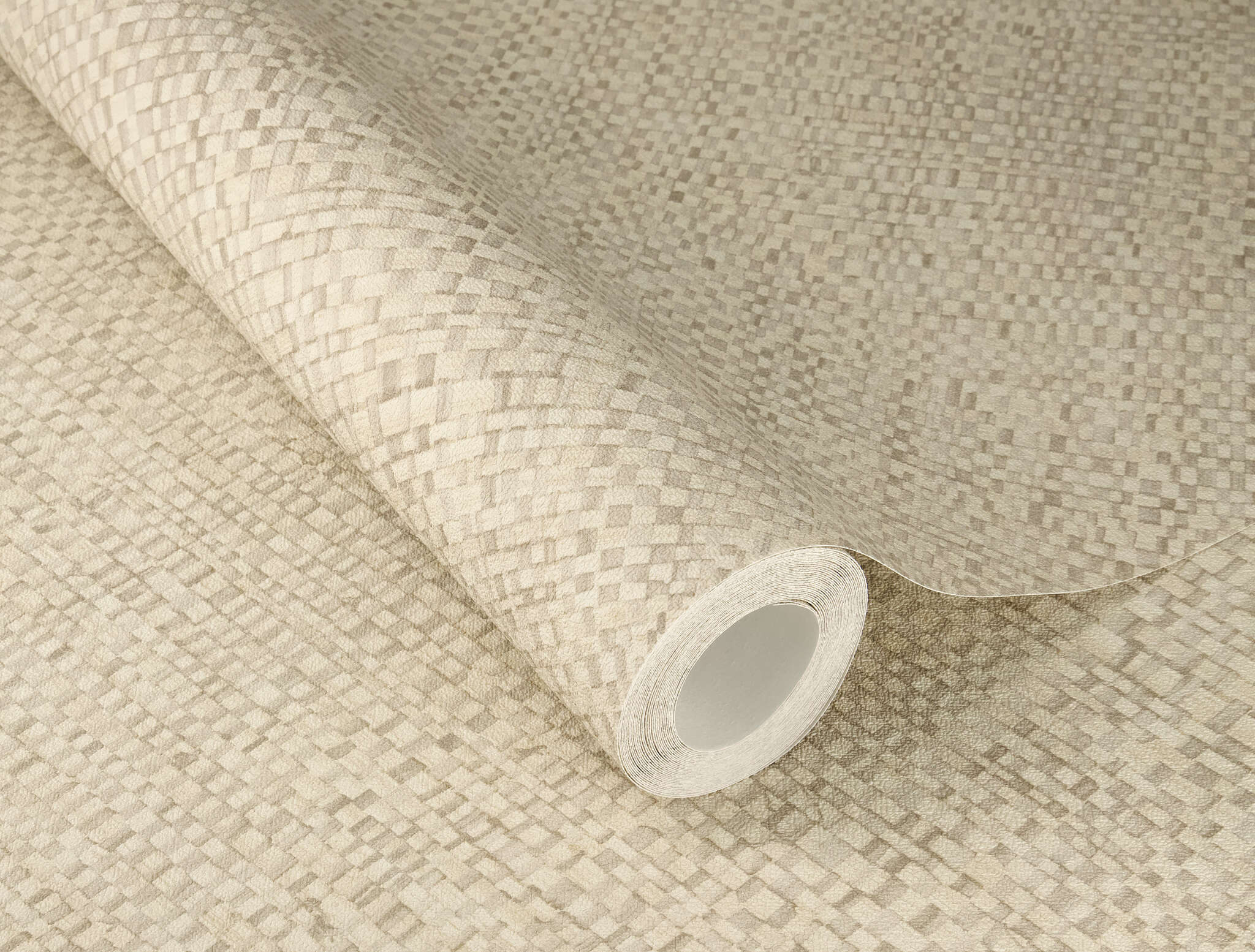 Fine, diagonal woven structures in warm beige tones give the surface an elegant yet natural look. The subtle pattern creates a restrained yet effective design that blends harmoniously with various interior styles. Thanks to the high-quality non-woven fabric, it is particularly easy to work with, while durability is guaranteed even in changing room conditions.