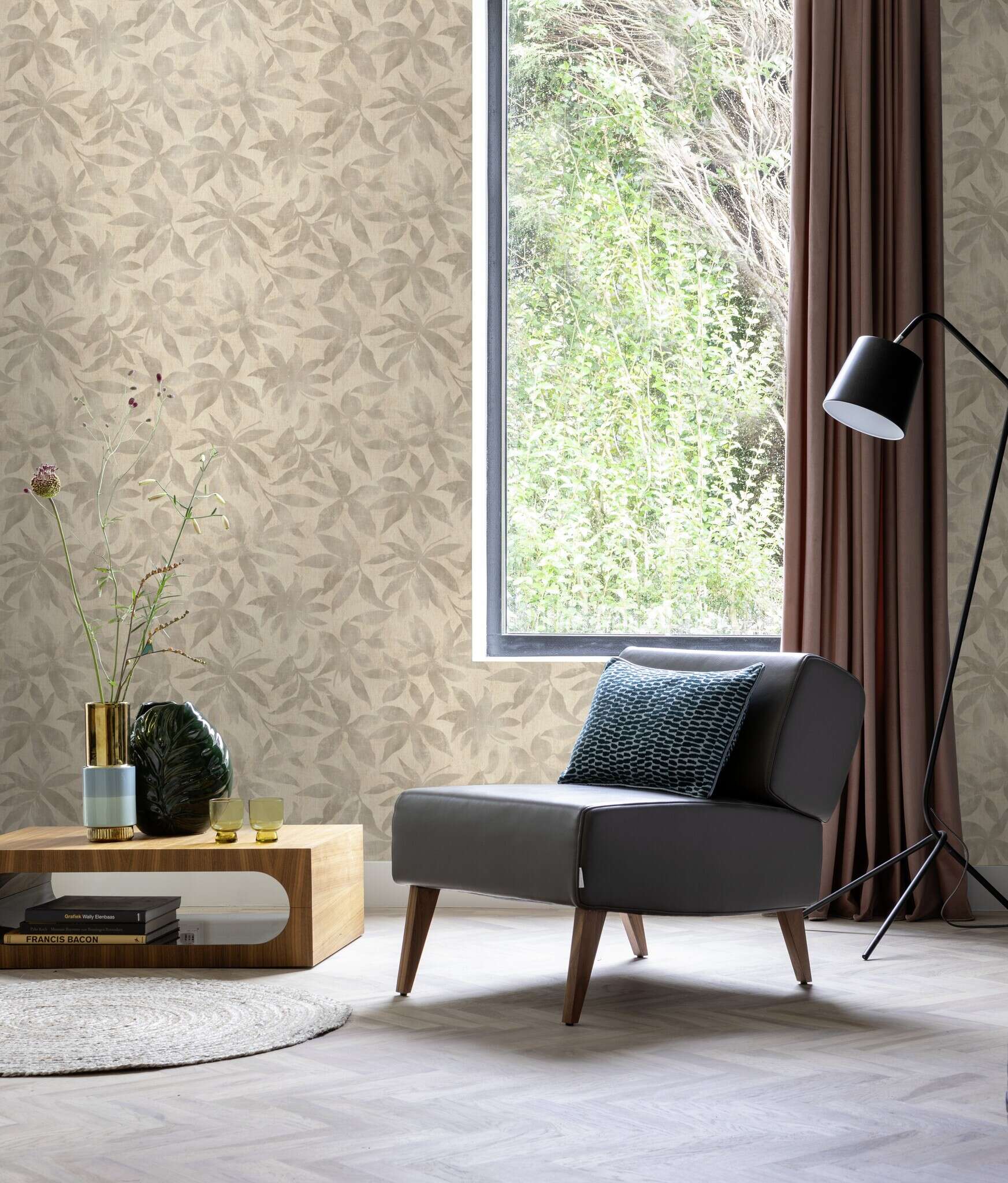With its delicate floral leaf pattern in warm beige tones, this wallpaper brings a natural yet elegant touch to any room. The understated design creates a finely balanced interplay of light and shadow, adding depth without dominating the space. The matt texture and subtly blurred look are reminiscent of a hand-painted watercolour technique, creating a harmonious and calm atmosphere. This wallpaper is particularly suitable for living and sleeping areas where a timeless, stylish environment is desired. Thanks to its neutral colour scheme, it can be combined in many ways and creates a cosy basis for various interior design styles.