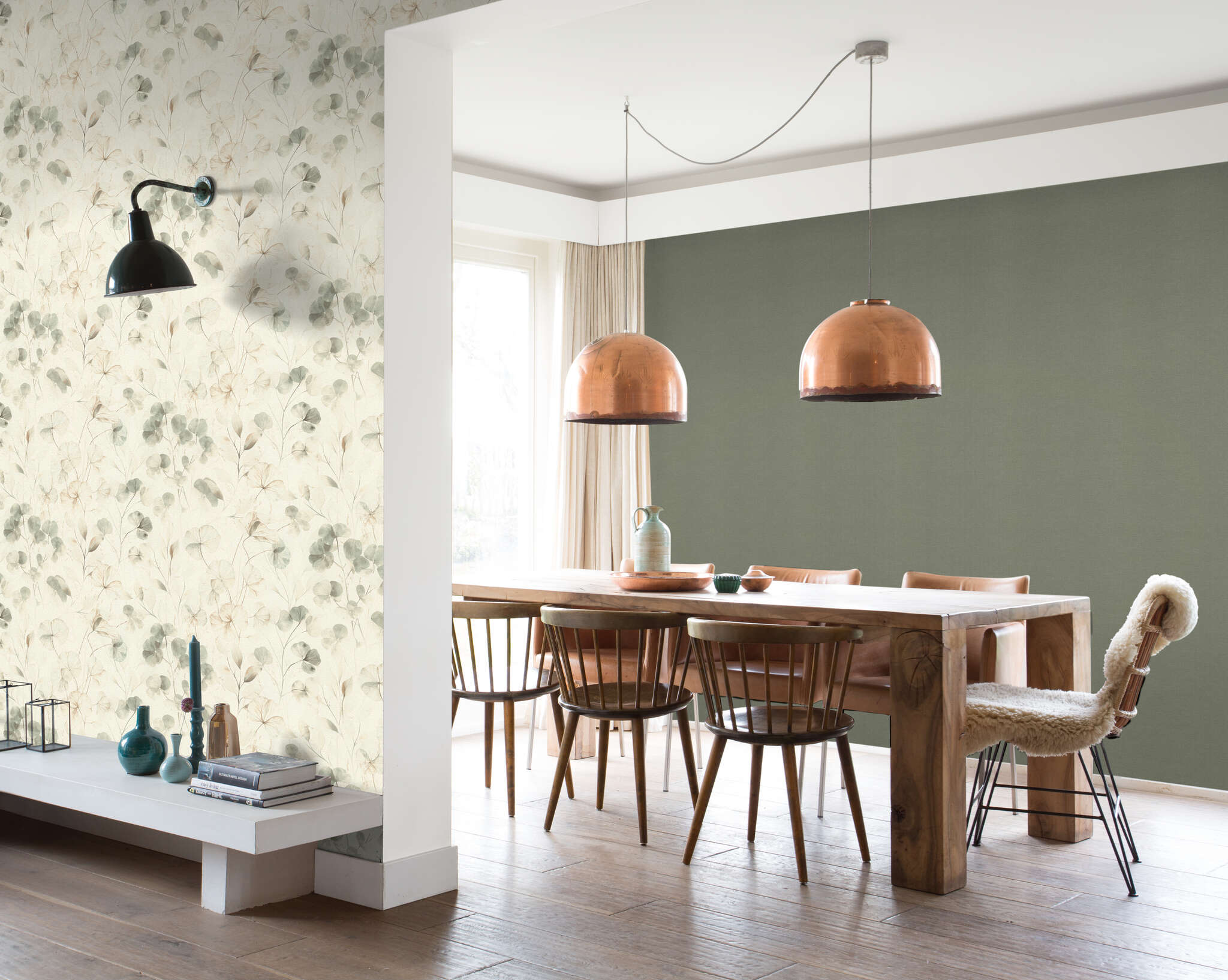 Ein gedämpftes Salbeigrün verleiht dieser Tapete eine natürliche, beruhigende Ausstrahlung. Die fein strukturierte, leinenartige Oberfläche bringt eine dezente Textur ins Spiel, die für optische Tiefe sorgt. Dank des hochwertigen Vliesmaterials ist sie nicht nur strapazierfähig, sondern auch besonders einfach zu verarbeiten.