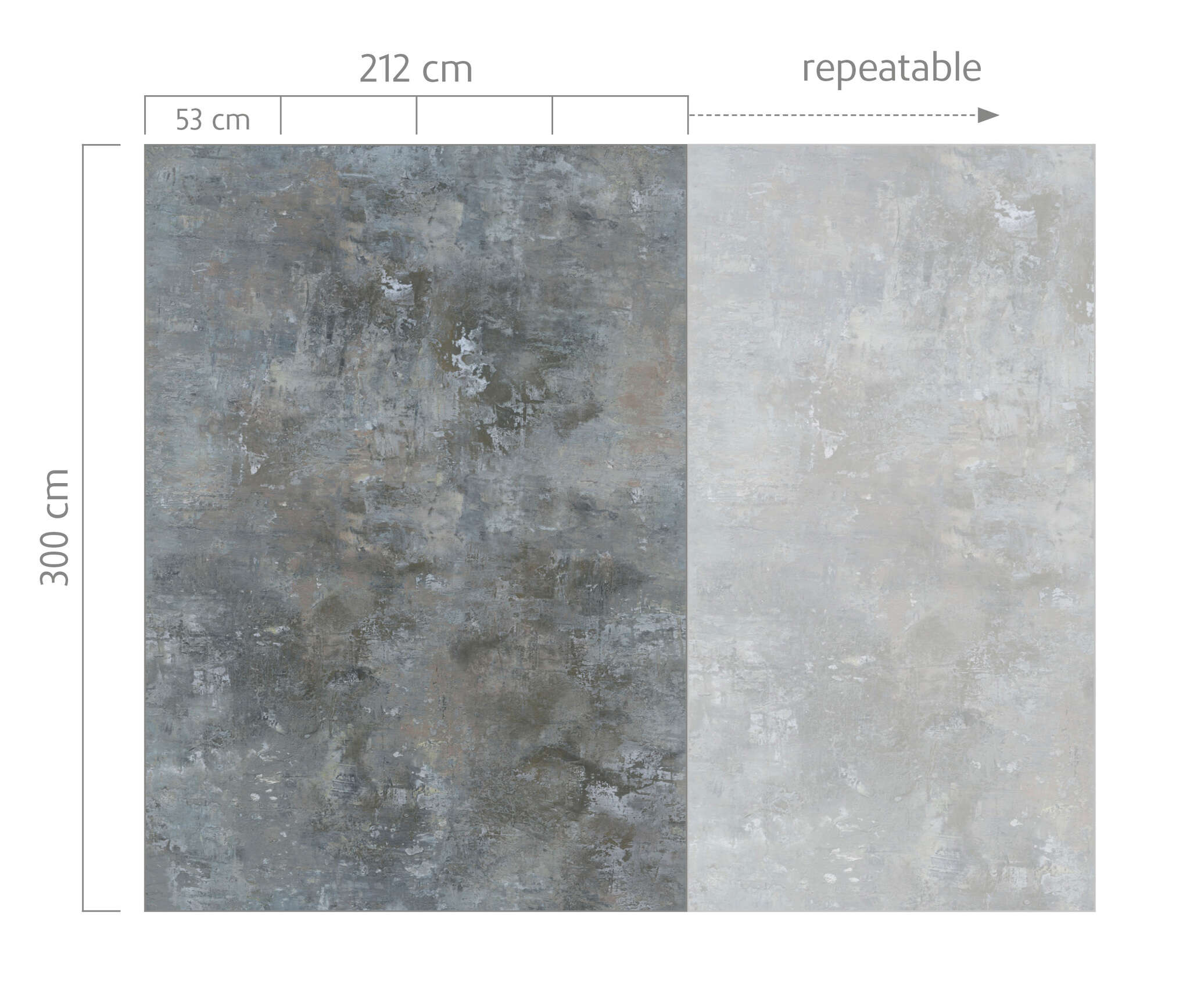 Signs of the times. The past leaves some beautiful traces. That's exactly what is so alluring – especially in interior design. This oversized digital print in grey with beige accents imparts its full effect over an area of 3 metres x 2 metres. And more even, as the prints can always be lined up! Just the thing for large rooms.