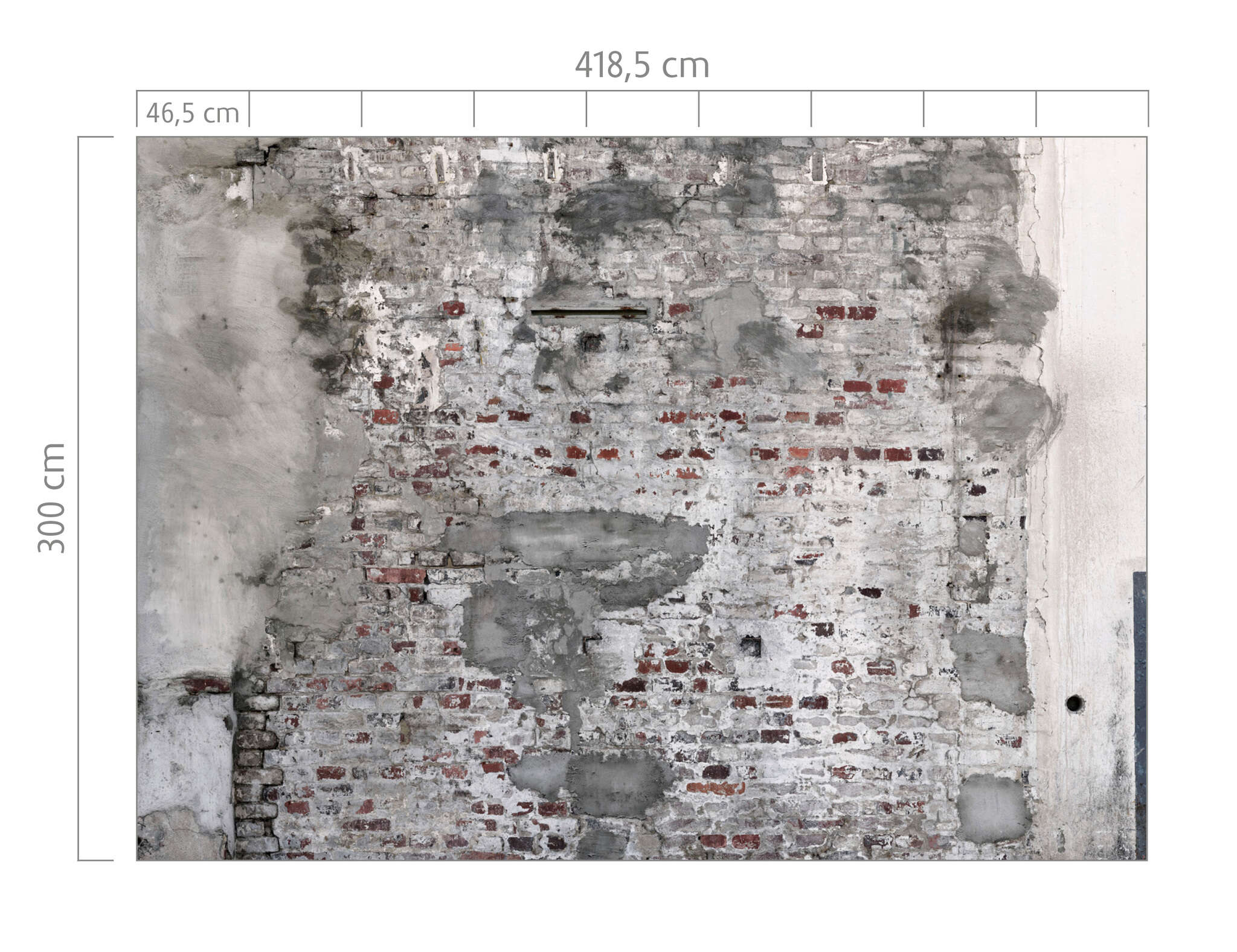This spectacular mural will transform your home into a chic loft in the blink of an eye. It features astonishingly realistic bricks, which here and there are covered in plaster. Measuring 418.5 cm x 300 cm in size, this extraordinary digital print brings a playful vitality to your walls.
