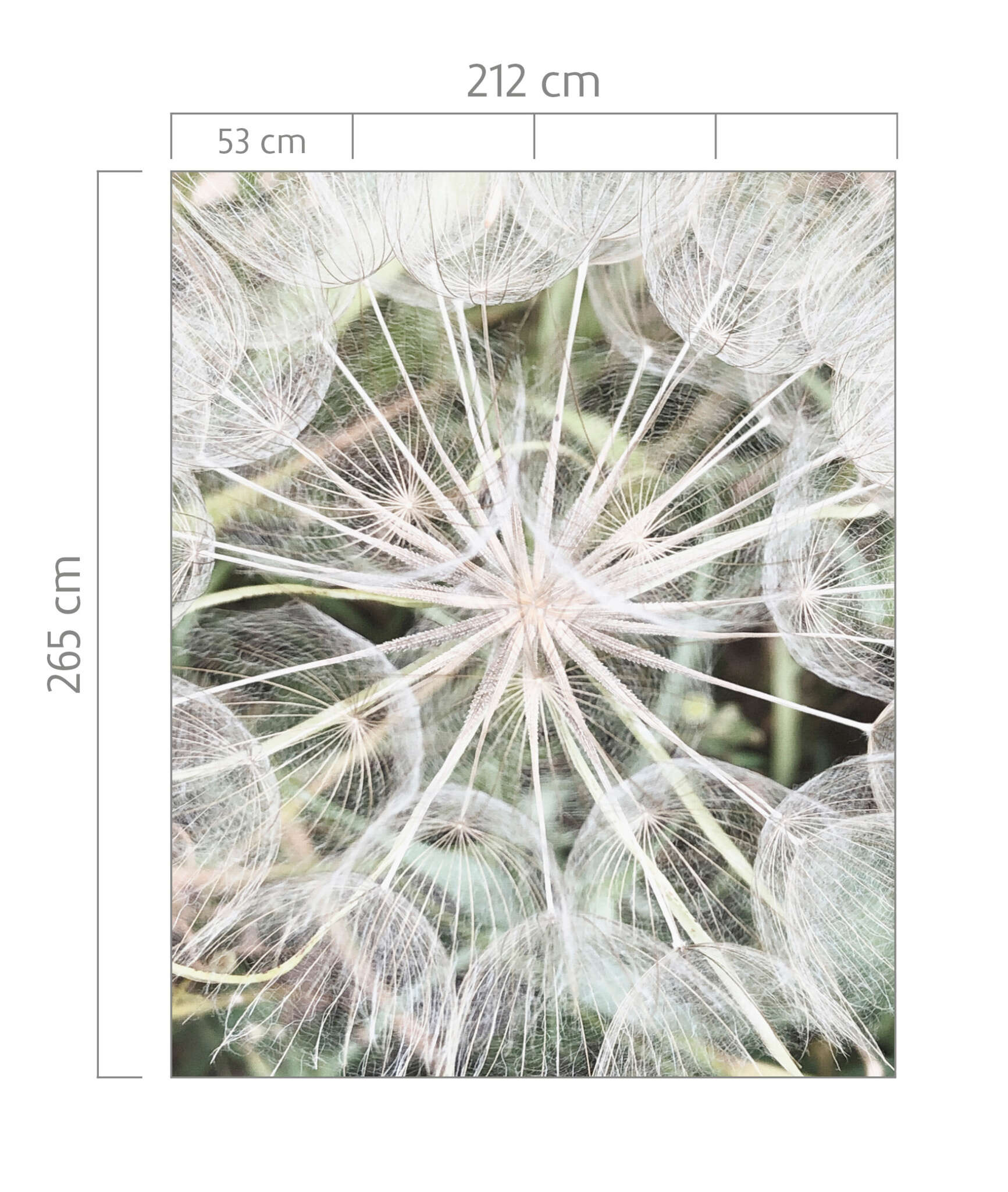 Stylish down to the last detail: nature has thought of every little detail. Here, every fine stem, every flower calyx, no matter how small, is in place. The dewy dandelion parachutes are a very special eye-catcher. So quickly put them on the wall and restage your living room and bedroom with a natural design.
