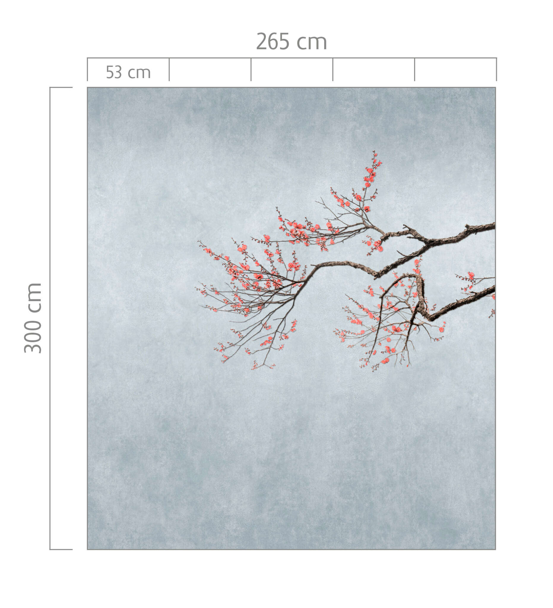 On this digital print, the focus is on the cherry blossom branch with pink blossoms. This timeless design is rounded off by the blue-grey background. This beautiful branch immediately creates a feeling of homely comfort and looks like a hand-painted painting on the wall.