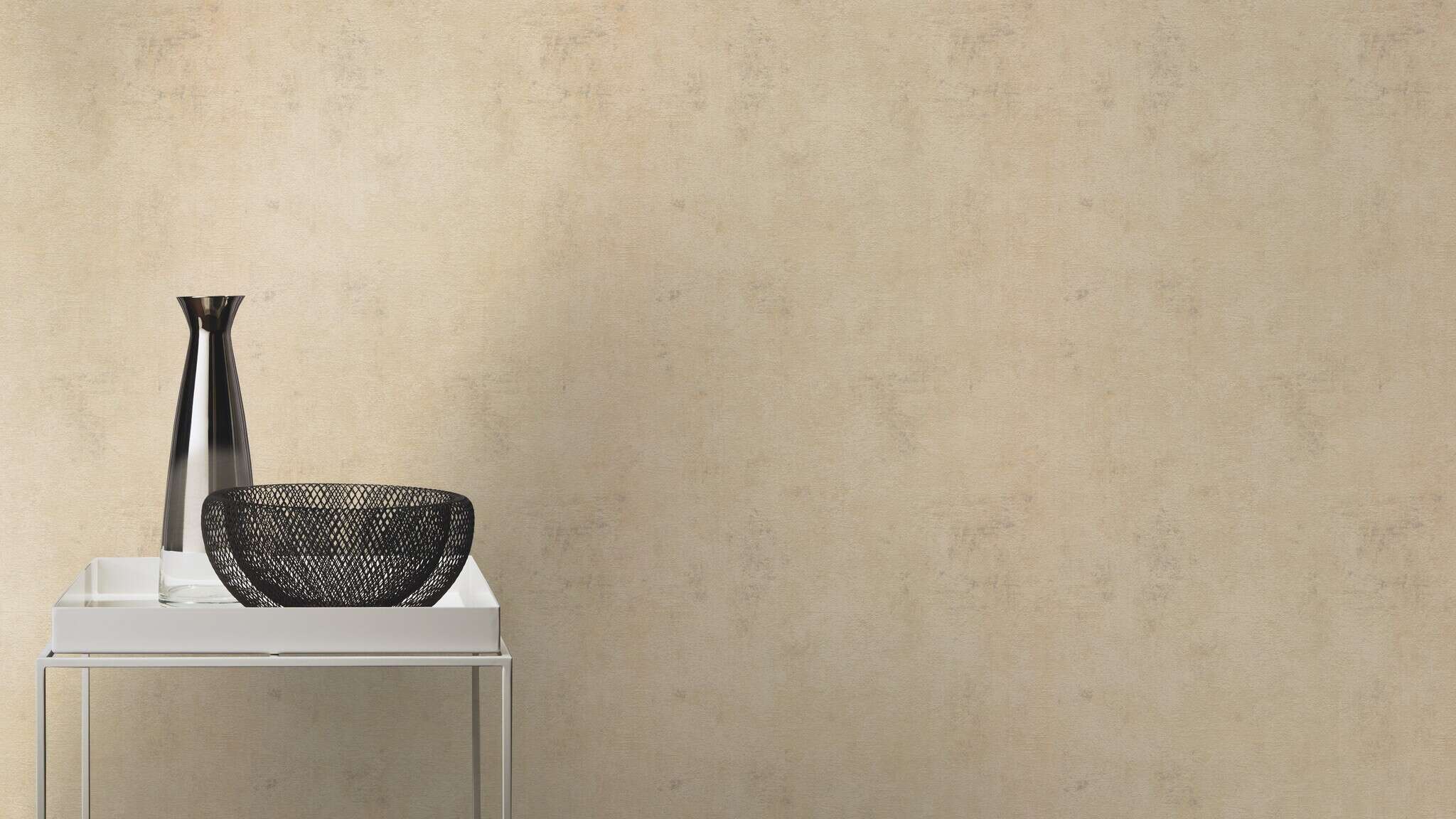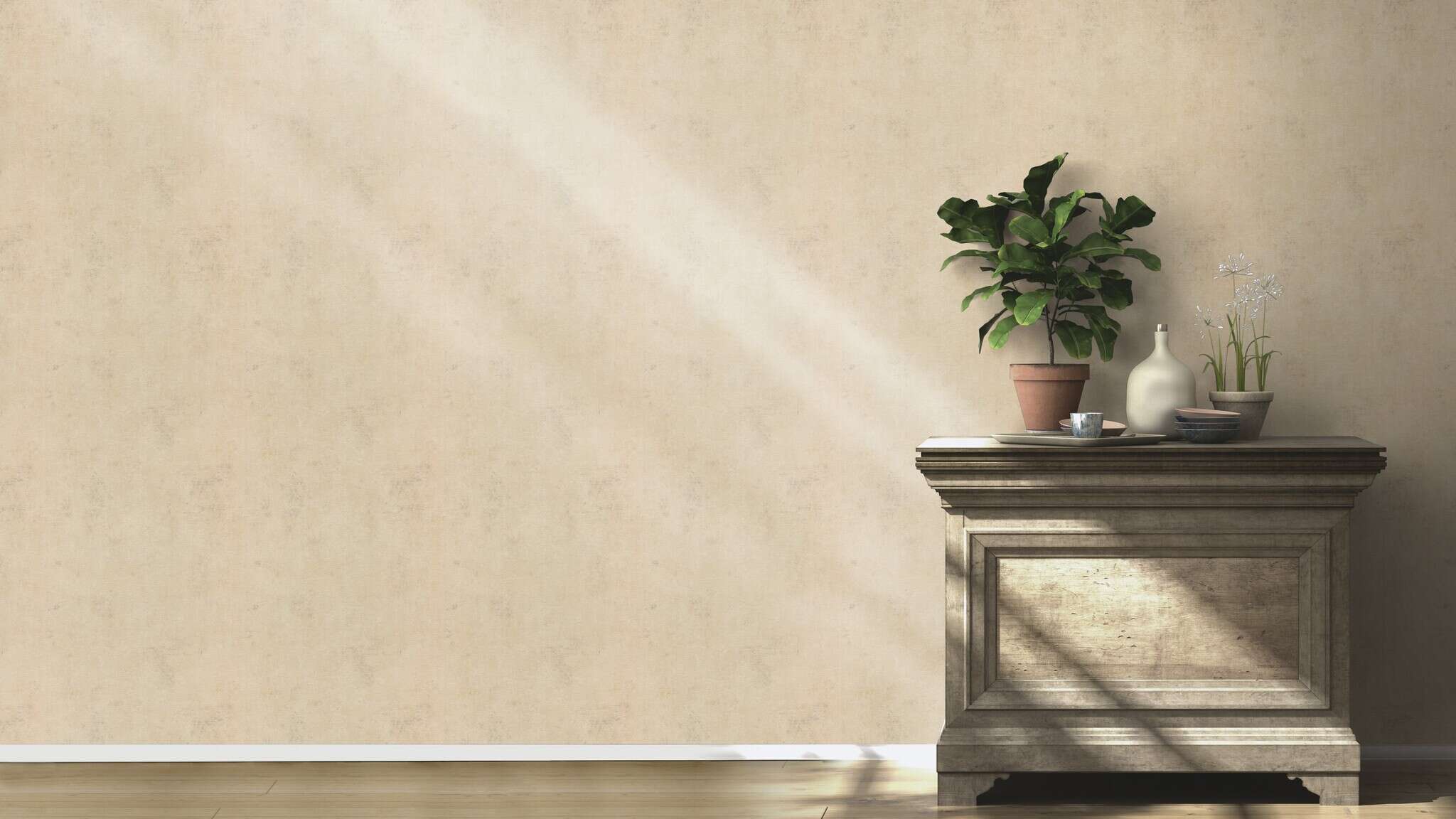 Ce papier peint séduit par sa teinte beige sable chaude qui crée une atmosphère chaleureuse et naturelle. La surface est légèrement structurée, avec de subtiles taches irrégulières et une touche de patine, ce qui confère au papier peint un aspect charmant et légèrement vieilli. Il semble ainsi vivant et donne aux pièces une douce profondeur sans être trop dominant. Idéal pour les espaces de vie qui doivent dégager une atmosphère chaleureuse et une élégance intemporelle.