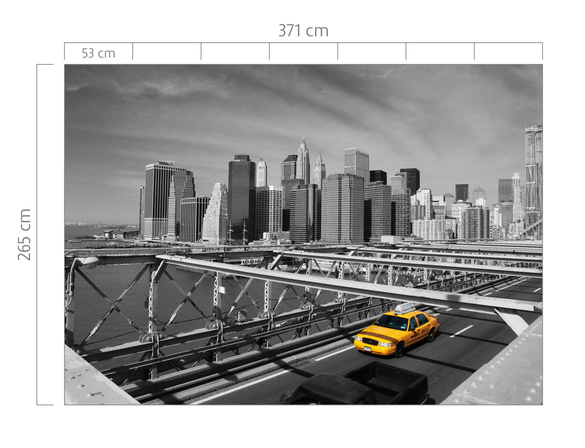 The American Wall of Life: Hier mit Blick auf den Hudson River und die Skyline von New York. Ein originales Yellow-Cap darf da natürlich nicht fehlen. Das maximal 325,5cm breite und bis zu 260cm hohe Motiv auf hochwertigem Vliesträger ergibt sich aus 7 Bahnen á 46,5cm Breite.