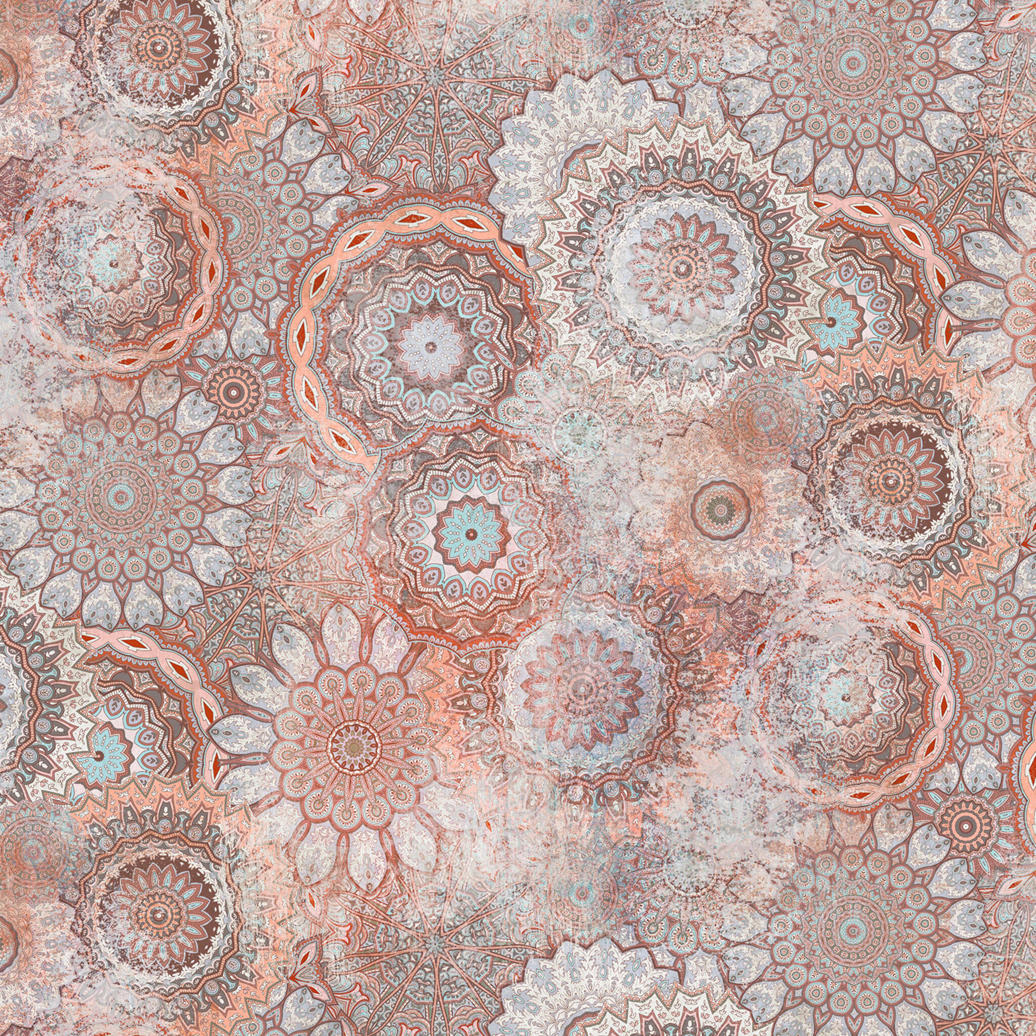 Oho Boho! Viel Lebensfreude bringen die floralen Kreise im Hippie-Style mit, die sich in Hülle und Fülle an der Wand platziert haben. Die Farben strahlen in Pastellrot, Hellblau und Weiß. Leichte Wash-out-Effekte sorgen für Abwechslung - so bleibt alles lässig und luftig.
