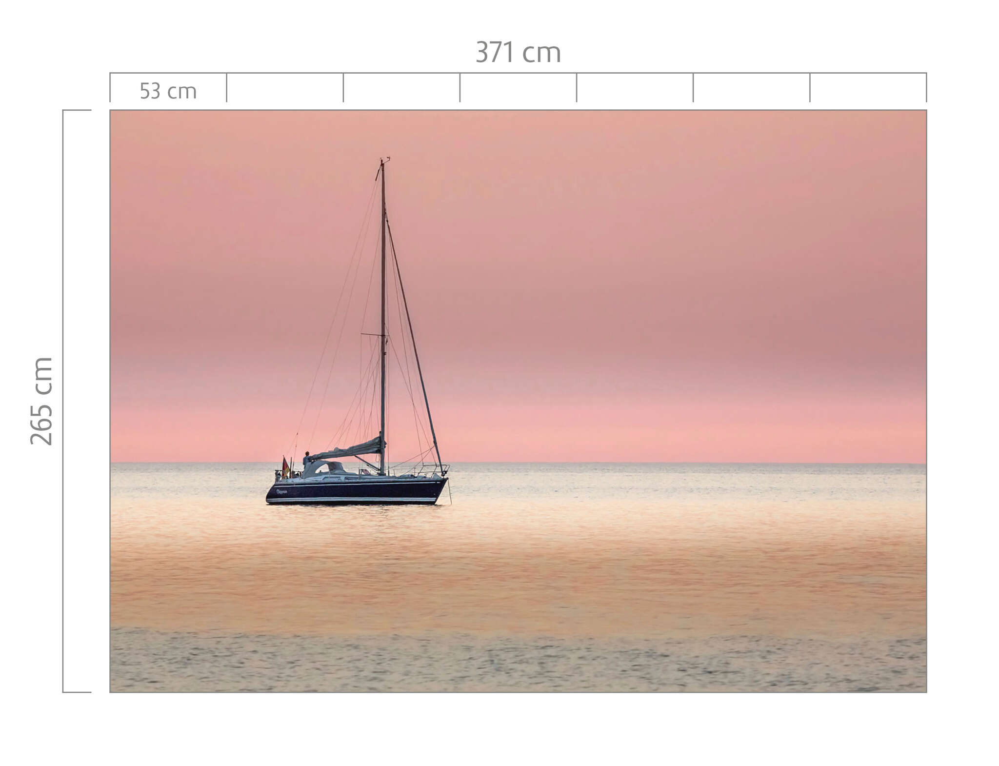 Gemütlich schifft das kleine Segelboot auf dem ruhigen Meer in Richtung Sonnenuntergang. Mit diesem Wandbild holen Sie sich das Urlaubsfeeling an Ihre Wand.