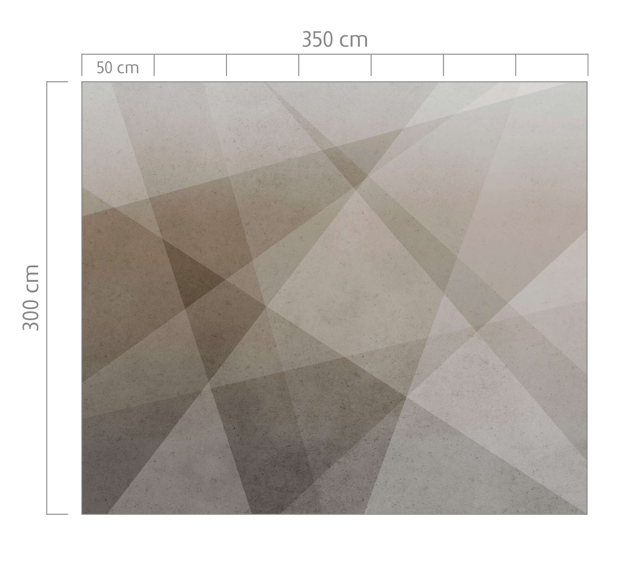 Linear, abstract and urban, this 300 x 350cm photo wallpaper is an absolute eye-catcher on any wall. Geometric shapes in different shades of beige on a concrete-look background define the look. This mural is the ideal backdrop for furniture and home accessories, but can also easily be presented as a solo artist.